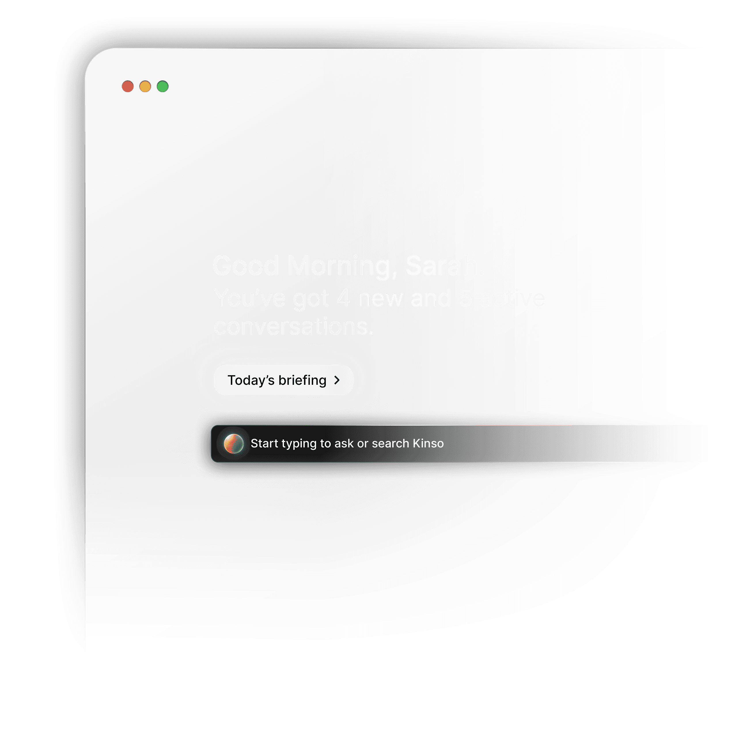 Talk to Kinso to access your morning briefing, respond to messages and ask questions about any of your conversations or contacts.